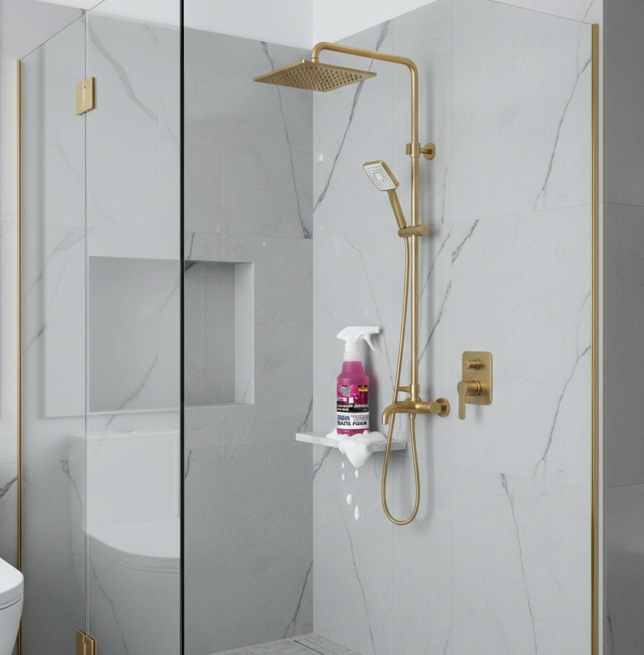 უნივერსალური დიზაინისთვის: განსაკუთრებით ეფექტურია შავი და ოქროსფერი ონკანების, ასევე საშხაპე მინის გასაწმენდად, ისე, რომ არ აზიანებს მათ ფაქიზ ზედაპირს.